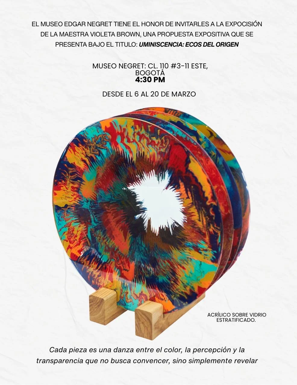 Cada pieza es una danza entre el color, la percepción y la transparencia que no busca convencer, sino simplemente revelar.
